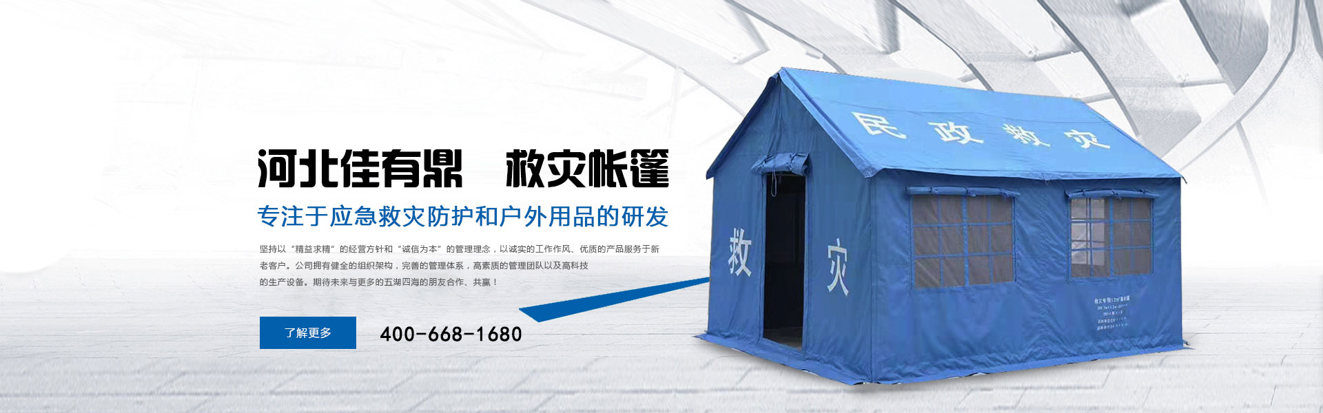 河北佳有鼎科技有限公司原為北京五環(huán)精誠帳篷有限責(zé)任公司多年來專注于應(yīng)急救災(zāi)防護(hù)和戶外用品的研發(fā),是一家集研發(fā)、設(shè)計、生產(chǎn)、銷售、服務(wù)于一體的綜合型公司。